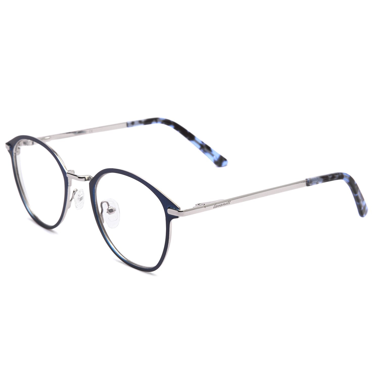 Anteojos ópticos de metal combinado. Compatibles con tecnología bifocal y multifocal. Especialmente recomendados para rostros ovalados, cuadrados y triangulares. ¡Cotiza el tuyo con filtro azul!