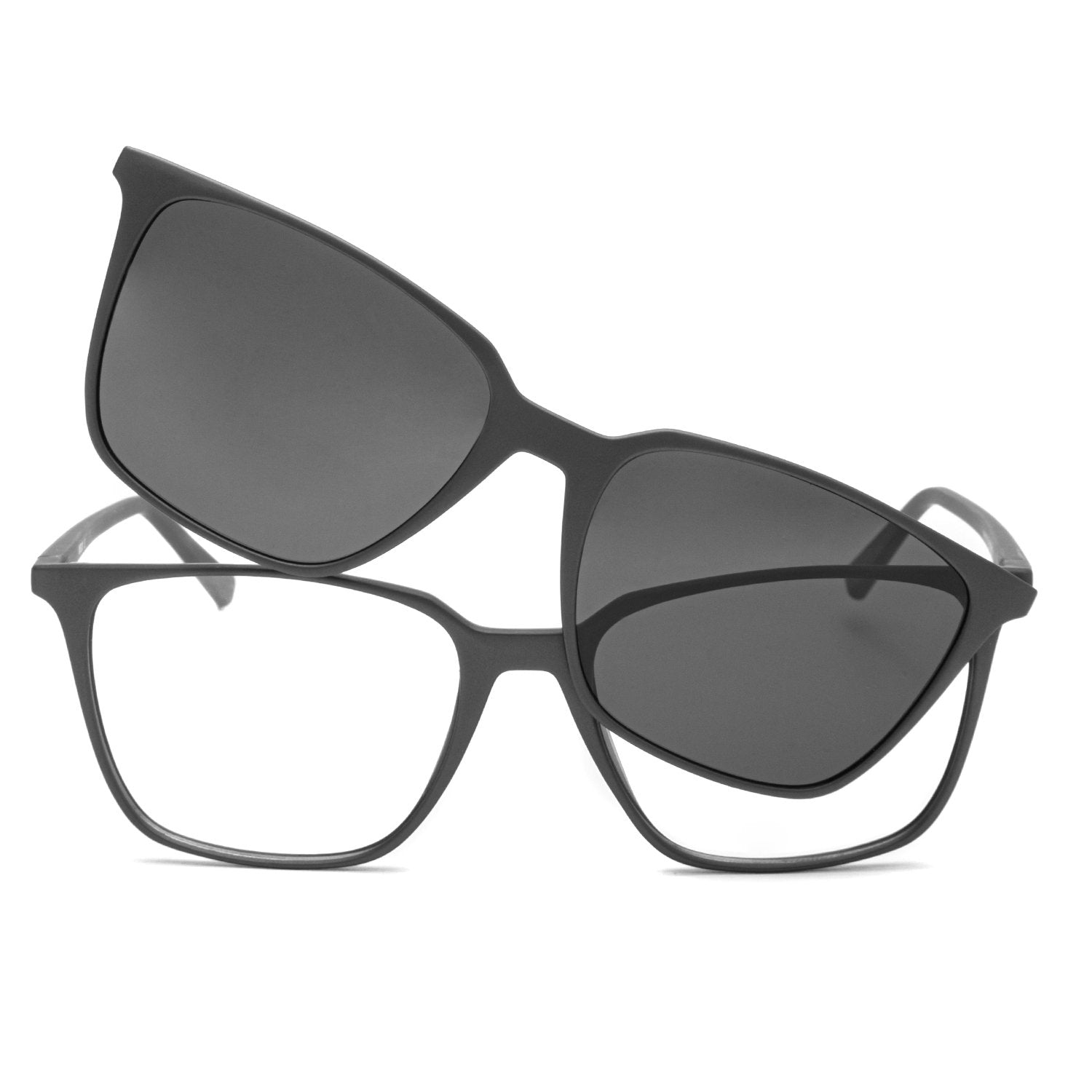 Anteojos Clip-On hechos de acetato. Compatibles con tecnología bifocal y multifocal hasta 3 dioptrías. Especialmente recomendados para rostros ovalados y redondos. ¡Destaca dónde vayas!